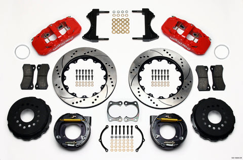 - Wilwood AERO4 Rear P-Brake Kit 14.00in Drill Red Big Ford New Style 2.