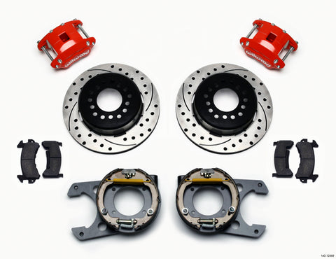 D154 Pro-Series rear disc kits provides a complete solution for popular muscle car rear axles that require a parking brake. Forged D154 dual piston calipers, 12.19” one-piece drum/rotors, and high friction pads provide optimized and balanced braking for all types of custom performance street/strip and show machines. The neatly hidden internal shoe system provides a clean installation with superior static holding power for parking. D154 rear caliper kits offer a complimentary match to vehicles using Wilwood D52 or D154 calipers on OE spindles. Optional caliper finishes and rotor designs enable the builder to personalize the style and optimize brake performance.This Part Fits: