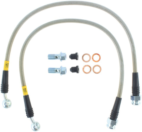 StopTech Stainless Steel Braided Brake Lines provide a quicker; firmer; more consistent pedal response by maintaining consistent brake pressure. Additionally; stainless steel lines provide precision brake modulation; especially during threshold braking. The improvement in pedal feel is more dramatic on older vehicles where the factory rubber line may have softened and swelled due to age. A variety of end fittings are available to meet application needs. All fittings are engineered for proper fit and durability. All necessary brackets and fasteners are included with each line kit.