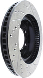 StopTech Drilled and Slotted Sport Rotors are 1-piece direct replacement brake discs for factory brake systems and stock calipers that look great behind your wheels – and offer significantly improved braking performance. The unique cross-drilling and slotting aids with heat and brake dust dispersal; prevents glazing of the pads; adds bite and improves wet and dry braking performance. Built to last; the black e-coating provides protection from corrosion and the high carbon metallurgy (in most applications) offers quieter operation; better crack resistance and increased performance.Warranty