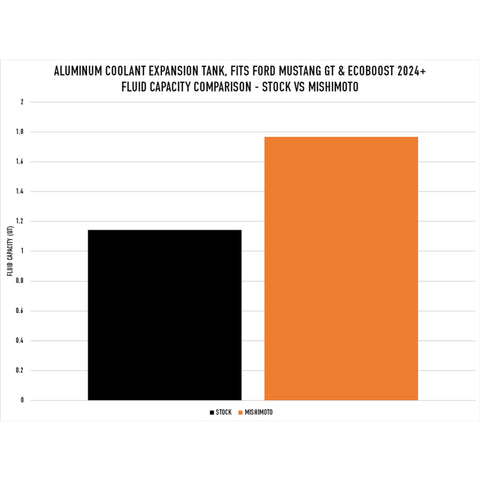 Introducing the Mishimoto Coolant Expansion Tank for the 2024+ Ford Mustang GT and EcoBoost. This direct-fit solution boasts all-aluminum construction that won’t yellow, crack, or leak with repeated heat cycles like the stock plastic tank will. Internal baffles prevent air entry during aggressive driving, while a 55-percent increase in coolant capacity improves heat dissipation. A high-visibility sight glass and stamped cold-fill line allow quick coolant level checks. Choose from a polished or micro-wrinkle black powder coated finish to match your style. Our expansion tank also features a coolant overflow port that allows you to install an NHRA-mandated overflow tank. This tank installs in an hour or less and is backed by the Mishimoto Lifetime Warranty to combine performance and aesthetics for a confident driving experience as long as you own your 2024+ Mustang.This Part Fits: