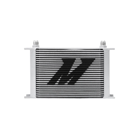 Every street or track vehicle demands a reliable and efficient cooling system.High oil temperatures accelerate oil degradation and can result in increased engine wear and potential failure of internal components.The Mishimoto universal 25-row oil cooler is the perfect upgrade for extending engine life and ensuring the proper lubrication of engine components while maintaining ideal oil temperatures.This oil cooler is nearly 2 inches thick and has an overall oil capacity of .44 qt.The Mishimoto universal 25-row oil cooler is available in silver or black and includes the Mishimoto lifetime warranty.Technical Bulletin