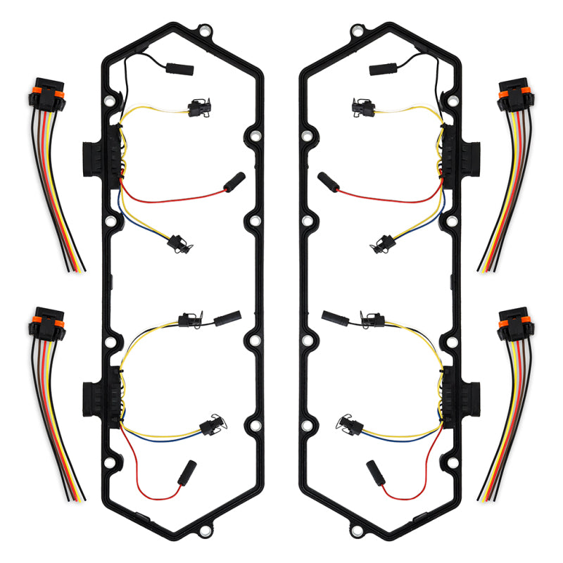 Glow plug harness failure is quite common for high mileage 7.3L and 6.0L Powerstroke models. Although many owners will find this harness damaged while performing other engine maintenance, sometimes a hard cold start is an early indicator that the harness has begun to fail. Years of supporting high amperage glow plug draw combined with high engine bay temperatures will melt the plastic connectors, eventually resulting in shorts within the circuit. Using our extensive experience with the Ford Powerstroke, our team identified the need for a more durable and economical replacement for the factory harness. The Mishimoto Powerstroke glow plug harness includes direct-fit valve cover gaskets with integral glow plug harnesses. In addition, our kit includes replacement pigtail connectors in the case that your engine harness has also been damaged. This full replacement kit includes everything you need to restore the glow plug wiring harness. Our kit uses high-quality connectors, robust terminals, and superior seals ensuring years of reliable service. As with all our products, this glow plug harness kit includes our signature Mishimoto Lifetime Warranty.This Part Fits: