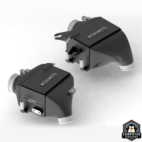 That’s why Mishimoto has developed our performance air-to-water intercoolers for the 2016-2024 Q50/Q60 3.0T. Our intercoolers feature a 49.8-percent increase in core volume over the stock intercoolers for improved heat transfer and maximum performance. That increase in core volume, combined with optimized tubes and fins, also allows our intercoolers to be over 51-percent less restrictive than stock. That means your turbos don’t have to work as hard, and the boost pressure they generate isn’t wasted shoving air through a restrictive intercooler. All those improvements result in dyno-proven charge air temperatures that are up to 23-degrees cooler than stock. Colder intake charge temps mean your VR30 can make the most of every drop of fuel, and we were able to produce power gains of up to 8 HP and 12 lb.-ft of torque without a retune. We also know that high boost pressures require strong components, which is why we constructed our intercoolers with cast aluminum end tanks. This design eliminates potential leak points and stress concentrations that welded tanks may suffer from. The included ancillary hoses and couplers ensure coolant and air flow reliably through the intercoolers, and the included engine cover spacers let you keep your extra cooling hidden for a stealth approach. Like all Mishimoto products, these performance intercoolers for the 2016-2024 Q50/Q60 3.0T are backed by our Mishimoto Lifetime Warranty.