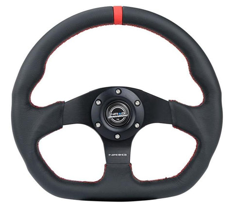 - NRG Reinforced Steering Wheel (320mm) Sport Leather Flat Bottom w/ Red