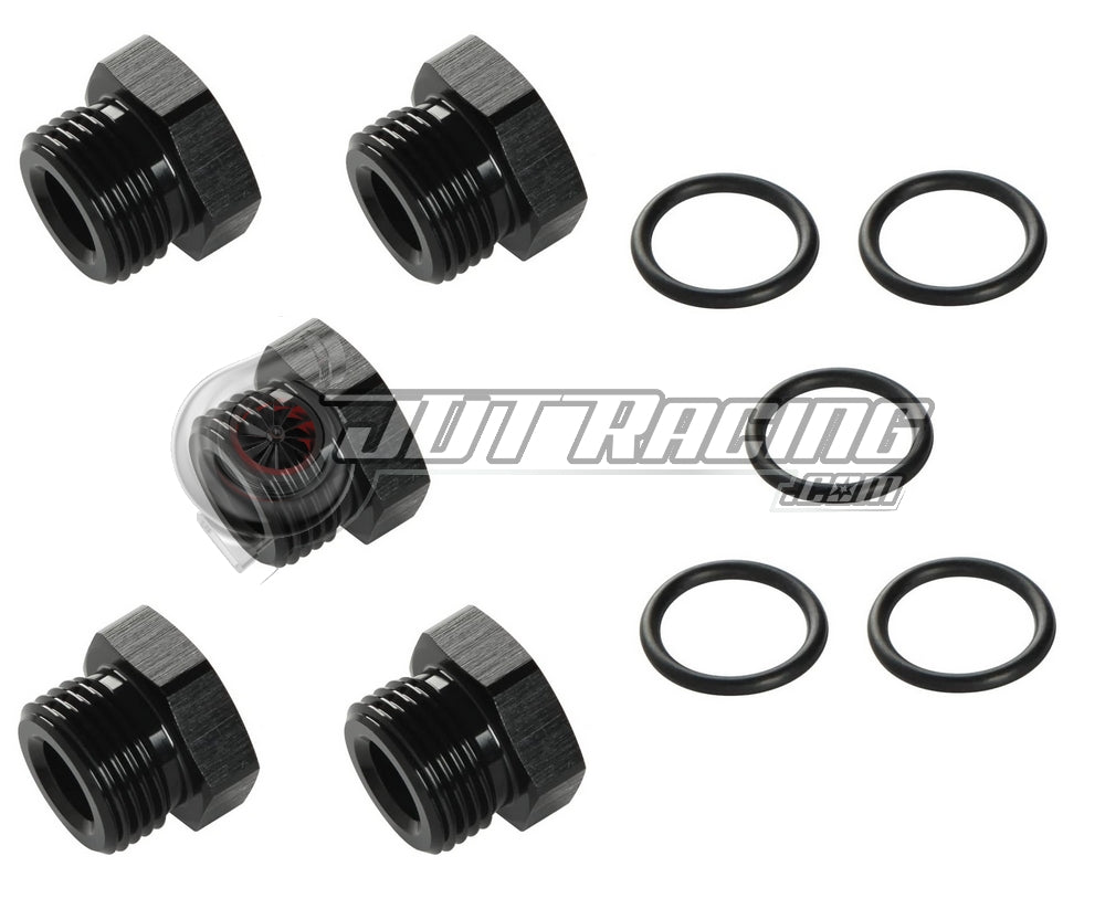 JDT Racing 3AN ORB Hex Head Block Off Port Plug with O-Ring, Black Aluminum AN3 AN Fitting (5 Pack)